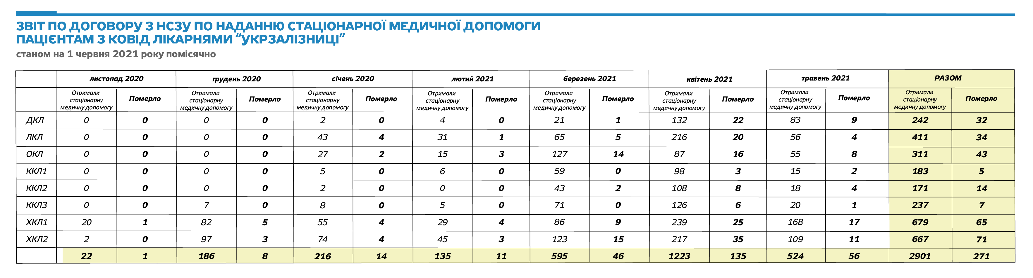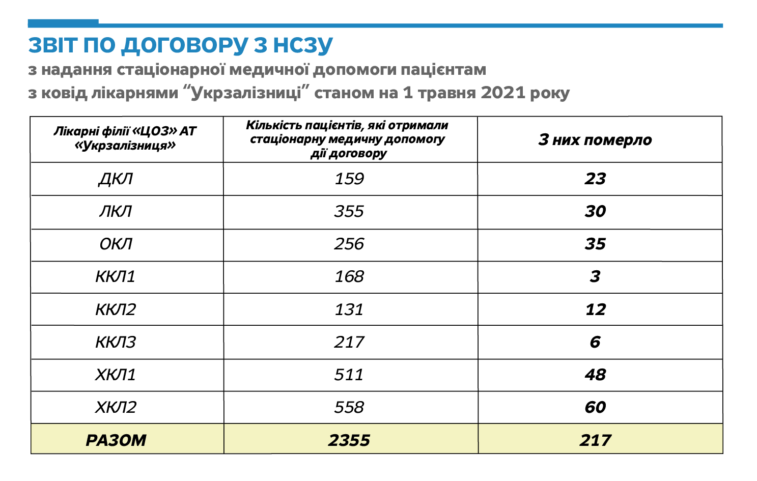 «Центр охорони здоров’я» АТ «Укрзалізниця» уклав договір з НСЗУ на стаціонарну допомогу при COVID-19 наприкінці листопада минулого року. Подаючи заявку на укладення договору, керівництво Центру підтвердило і внесло відповідні дані в електронну систему охорони здоров'я, що всі лікарні, перелічені в договорі, відповідають вимогам і готові надавати медичну допомогу пацієнтам.