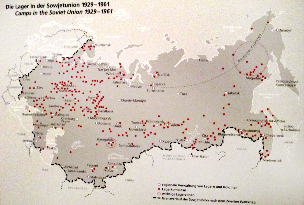 Як невеличкий позитивний виняток можна відзначити карту ГУЛагу в радянській частині експозиції і поруч із нею знімок табору у Воркуті. Але це розташовано біля бравурних плакатів про відродження "народного господарства". ВПК. Те, що зброю для прийдешніх перемог кували в умовах, коли країна жила на межі й за межею виживання (чого вартий лише голод 1946-го), якось залишилося за межами погляду авторського колективу.