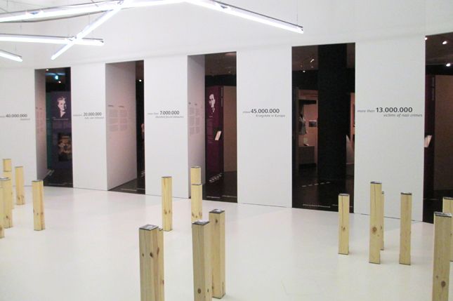 Перший зал зустрічає "постмодерністською" інсталяцією - стовпчики, а на стінах - цифри, сумний підсумок до 1945-го: 13 млн жертв нацистських злочинів, 7 млн визволених примусових працівників, 400 тис. визволених з концтаборів. Скільки ж людей у результаті війни стали жертвами комуністичних злодіянь, скільки стали рабами сталінського ГУЛагу - цієї статистики немає.