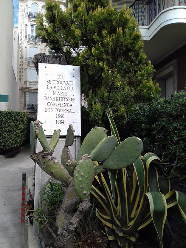 Народжена, як за Гоголем, "на хуторі поблизу Диканьки", вона разом із матір'ю поселилася в Ніцці, коли їй ледве виповнилося 13 років, і зразу ж на тій самій віллі, якої зараз немає, почала писати свій знаменитий щоденник, закінчений лише з її смертю від сухот у 25 років. Обдарована художниця, вона залишила чимало талановитих робіт, більшість яких, на жаль, загинули в роки німецької окупації України.