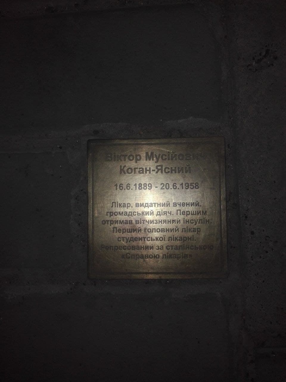 Як з’ясувалося, пам'ятний знак на вулиці Алчевських у Харкові встановили місцеві ентузіасти. У своїй передачі «Історія медицини в особах» Максим Розенфельд розповідає, що в Німеччині діє проєкт «Камені спотикання». На бруківці поруч із місцем, де жила або працювала людина, що стала жертвою нацистського режиму, встановлюють покритий латунню невеличкий блок із ім’ям, прізвищем та роками життя. І перехожі, поспішаючи у своїх справах, буквально спотикаються об такий знак.
