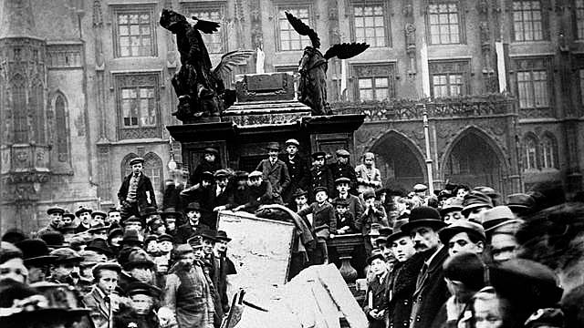Чехословаччина вже знала сценарій, як можна вчинити із пам'ятниками попередньої ідеології: 3 листопада 1918 р., через тиждень після проголошення Чехословаччини, на празькій Староміській площі натовп повалив Маріанський стовп - колону зі статуєю Діви Марії. І хоча монумент було споруджено 1650 року на знак подяки Богородиці за зняття шведської облоги з Праги у Тридцятилітній війні (1618–1648), місцеві чехи затято пов'язували її появу в місті виключно з поразкою чеського війська у битві на Білій Горі в листопаді