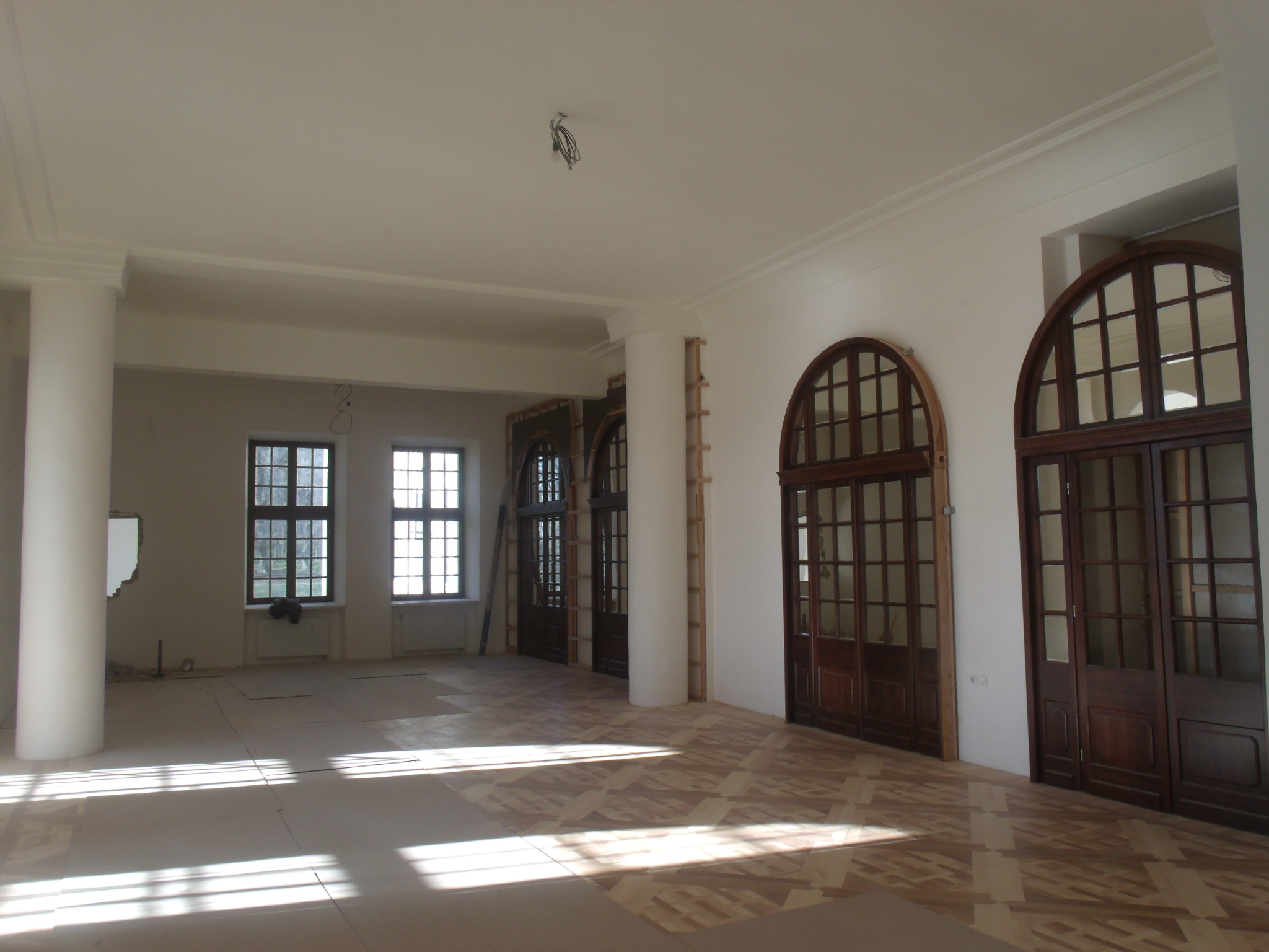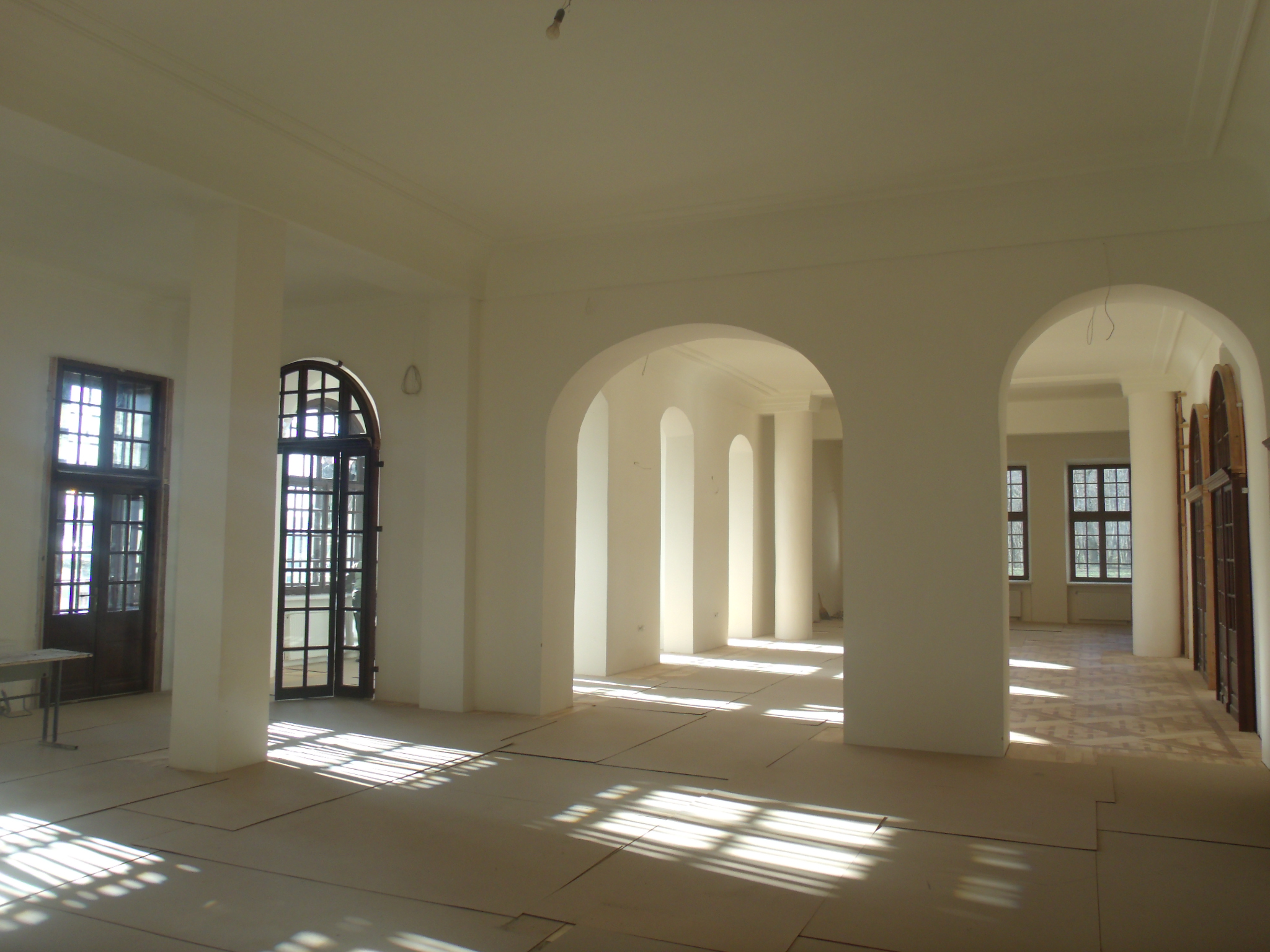 Архітекторів, які б дали старт реставраційним роботам, не довелося шукати за тридев'ять земель. В архітектурній майстерні Юрія Вербовецького (м. Збараж) було розроблено проект відтворення інтер'єрів Дзеркальної зали з п'яти просторово об'єднаних приміщень - правої і лівої Аркових галерей, Зали з каміном, Центральної кімнати та допоміжних приміщень - без втручання у планувальну структуру.