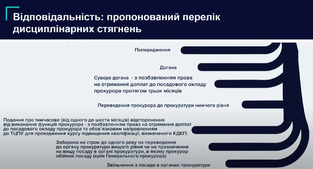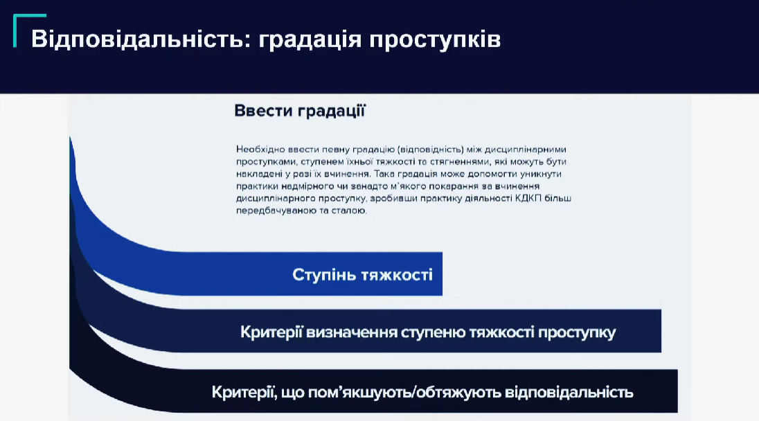 Він продемонстрував пропозиції щодо покращення дисциплінарної практики в питанні розширення видів стягнень і запровадження градації проступків.