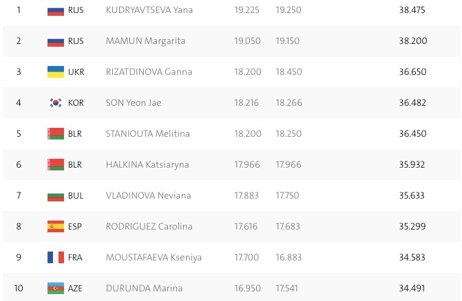 Українка Ганна Різатдінова показала третій результат на Олімпіаді-2016 в Ріо-де-Жанейро. Грація не змогла обійти лише конкуренток з Росії, які, незважаючи на помарки, отримували найвищі оцінки від суддівського корпусу.