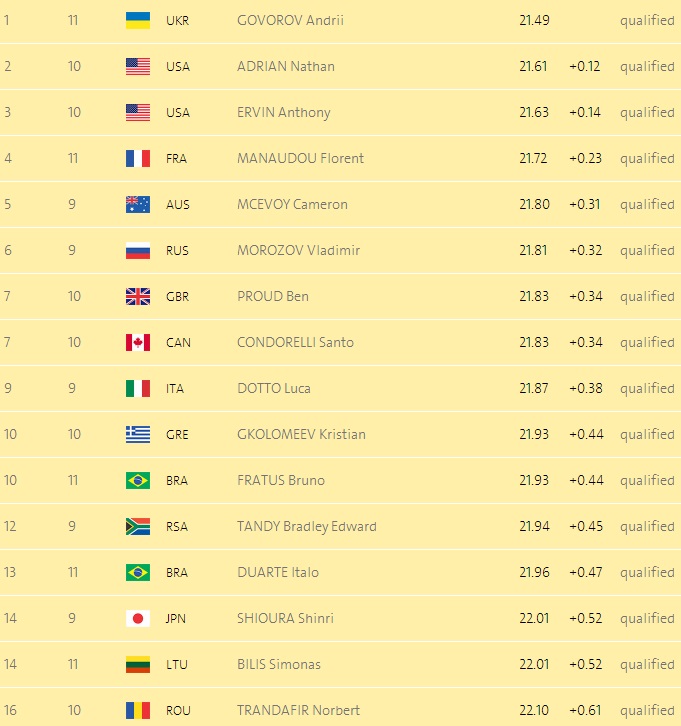 Український плавець Андрій Говоров здобув перемогу у кваліфікаційному запливі на 50 метрів вільним стилем і пройшов до півфіналу олімпійського турніру в Ріо-де-Жанейро.