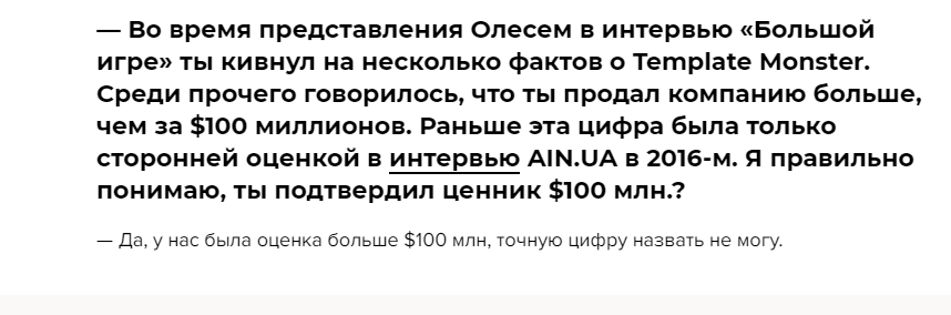Наприклад, про це він розповідав в інтерв'ю Ain і ютуб-каналі Big money.