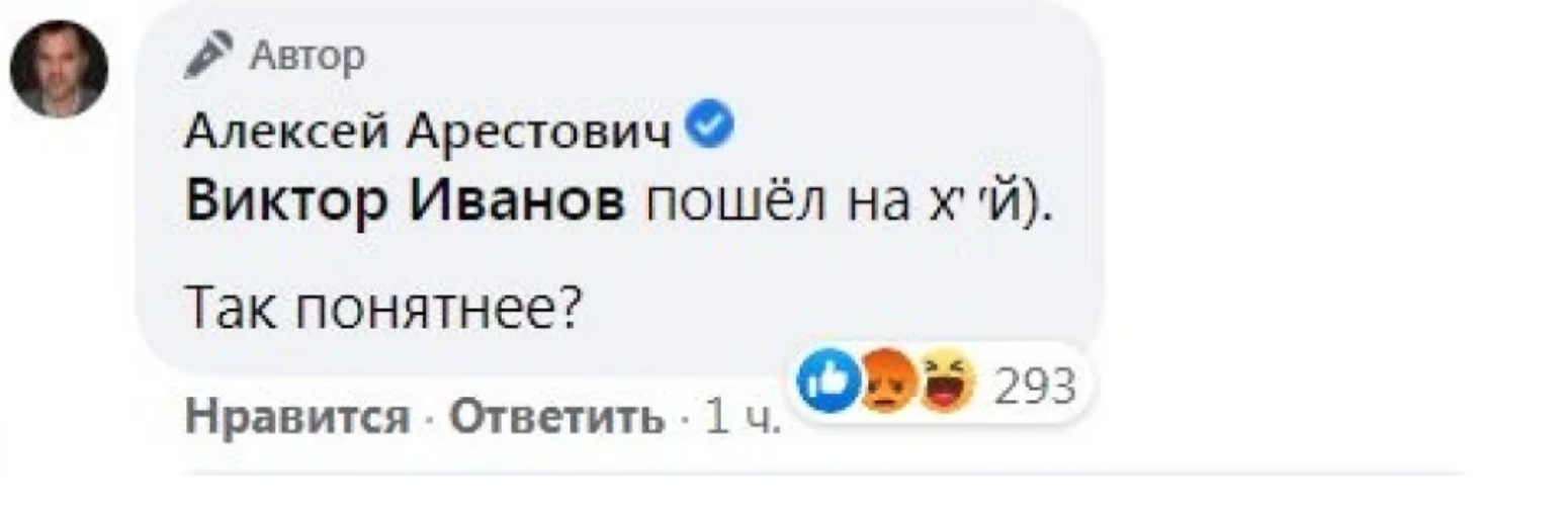 Олексій Арестович, представник української делегації в ТКГ обматюкав користувача Facebook, який під одним з його дописів у соціальній мережі попросив інформувати про переговори щодо Донбасу українською.