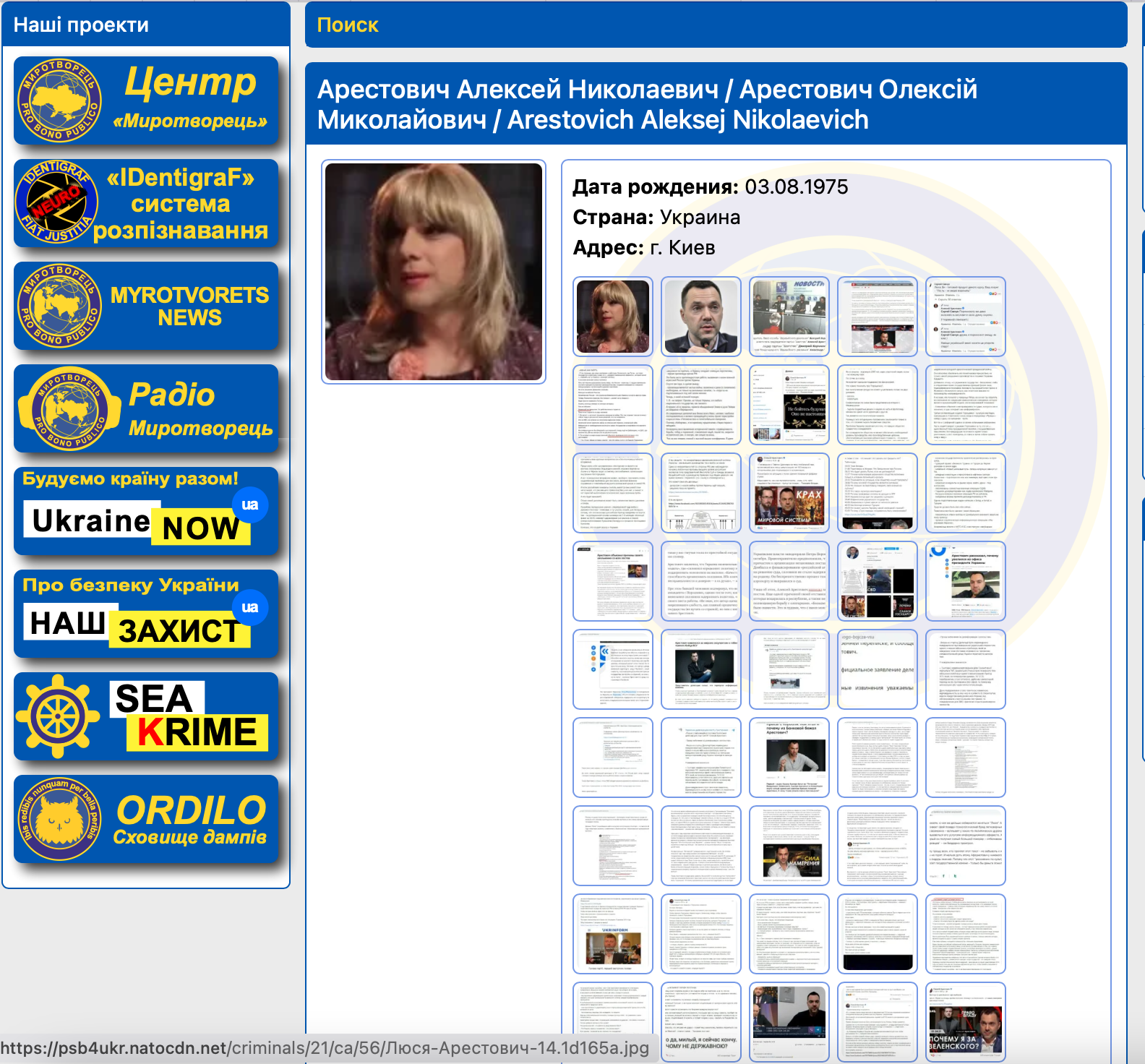 Олексія Арестовича, який нещодавно склав повноваження спікера ТКГ, внесли в базу "Миротворець". Інформацію можна перевірити на сайті неурядової організації.