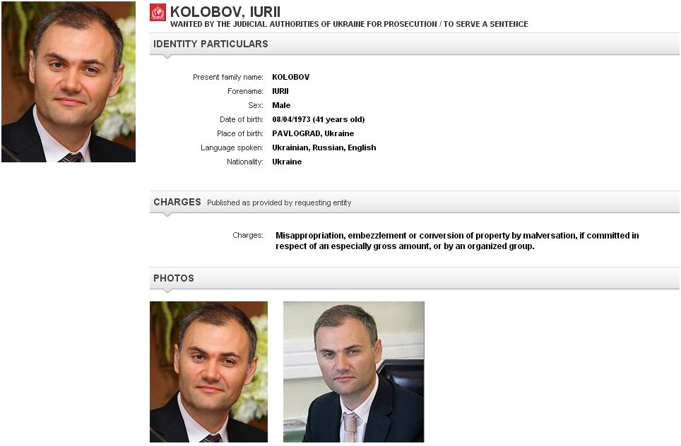 "Оголошено в міжнародний розшук Інтерполу (червона картка-затримання для екстрадиції в Україну): Янукович Віктор Федорович, Янукович Олександр Вікторович, Азаров Микола Янович, Багатирьова Раїса Василівна, Колобов Ю. В. (екс-міністр фінансів України), Дзекон Р. Б. (екс керівник Укртелекому)", - написав Аваков в Facebook.