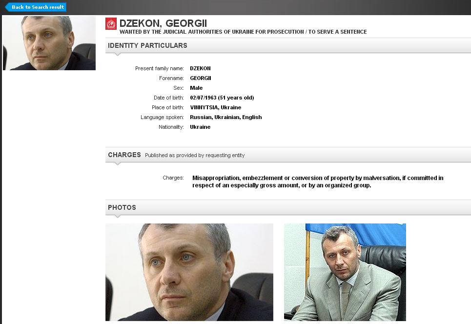 Робота з Інтерполом триває, зазначає він, нагадавши, що раніше були оголошені в розшук Інтерполу Ставицький Е. А., Курченко С. В., Арбузов Ц. Р., Клименко А. В., Ігнатов А. П., Динник А. В.