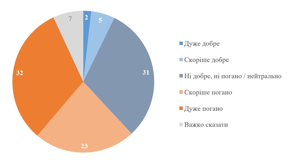 Водночас 55% респондентів скоріше або дуже погано оцінюють діяльність партії «Слуга народу». При цьому дуже погано оцінюють діяльність «слуг» 32% всіх опитаних.