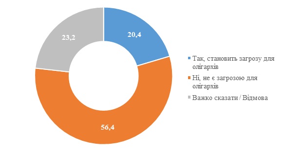 «Більшість жителів України – 56,4% – вважають, що Закон про деолігархізацію не є загрозою для олігархів. Вважають, що він становить загрозу – 20,4% респондентів», - йдеться у пресрелізі.