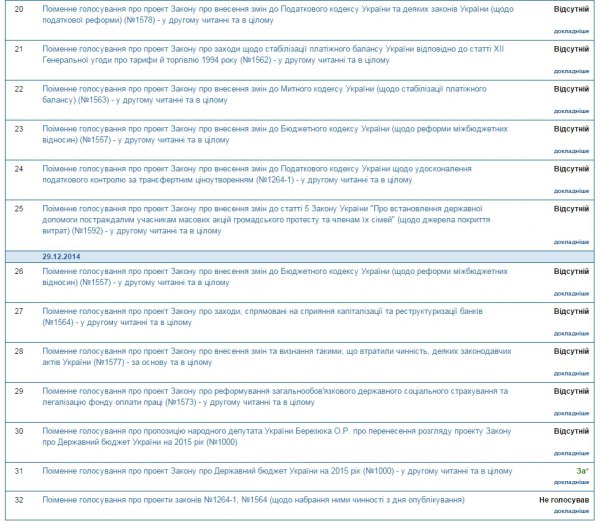 "Як відомо, бюджет на 2015 рік був схвалений в 4:24 ночі з 28 на 29 грудня 2015 року. За це рішення начебто проголосували 233 депутати. Мої дані дозволяють стверджувати, що під час голосування за бюджет в системі голосування було використано картки щонайменше семи відсутніх у сесійній залі", - пише депутат від "БПП" Сергій Лещенко у своєму блозі на "Українській правді".