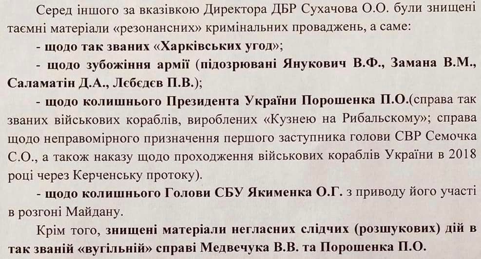 Тож ДБР знищило таємні матеріали за такими важливими провадженнями: