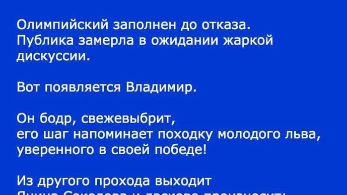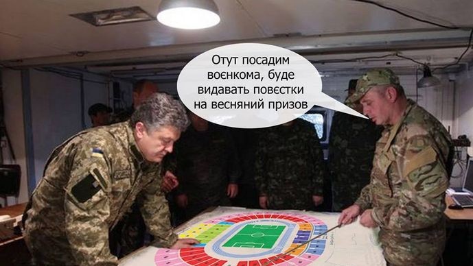 З подачі кандидата в президенти і шоумена Володимира Зеленського його спілкування з чинним главою держави Петром Порошенком проходить у форматі відеороликів, адресованих, у першу чергу, виборцям. Висунута Зеленським умова зустрітися на стадіоні і здати аналізи перед дебатами, а також відповідь і зустрічне запрошення Порошенка стали приводом для безлічі мемів і фотожаб, які українці публікують в соціальних мережах.