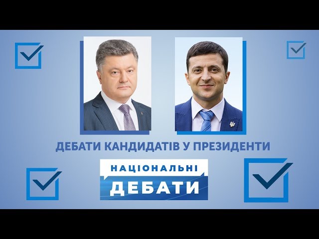 Петро Порошенко і Володимир Зеленський дискутували з 19:00 до 20:00 у п'ятницю, 19 квітня, на НСК "Олімпійський". Їх дискусія структурно була організована як дебати, однак з точки зору законодавства ними не є. Передбачені законом про вибори президента дебати відбулися в студії "Суспільного".