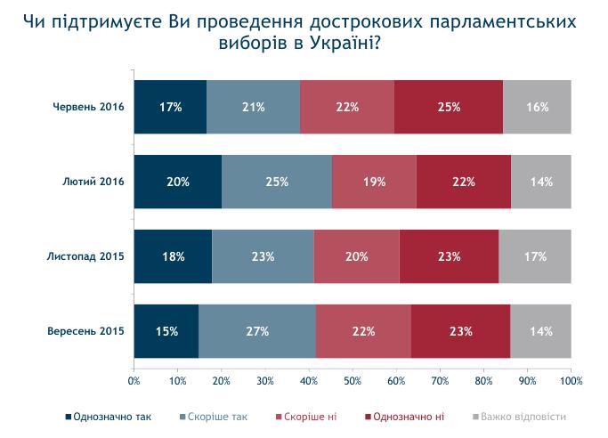 При цьому кількість прихильників дострокових виборів дещо знизився порівняно з лютим, коли їх підтримували 45% українців, а 41% були проти.