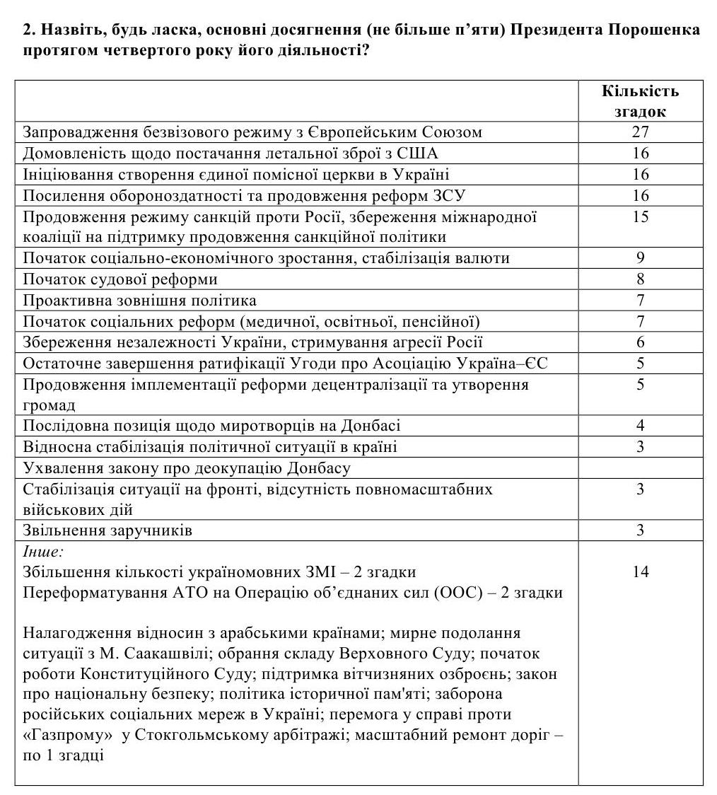 Фонд "Демократичні ініціативи" 16–23 травня 2018 року провів експертне опитування "Четвертий рік президента Петра Порошенка". Метою опитування було з'ясувати думки експертів щодо основних досягнень і невдач Порошенка протягом четвертого року його каденції та узагальнити рекомендації експертів щодо його наступних кроків. Усього було опитано 55 експертів.
