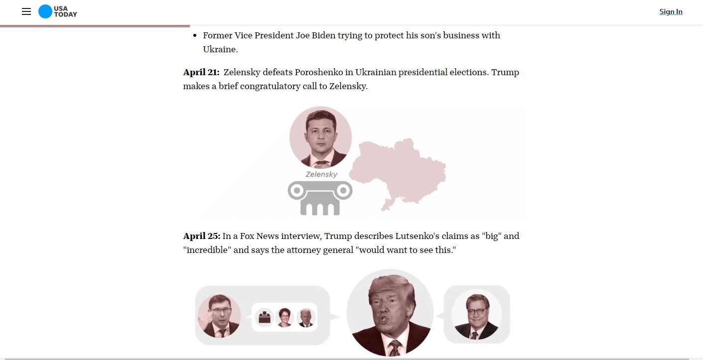 Матеріал, в якому опубліковано 12 однакових карт України без Криму в матеріалі, який вийшов із заголовком "Візуальна хронологія подій, які призвели до фатального телефонного дзвінка Трампа".