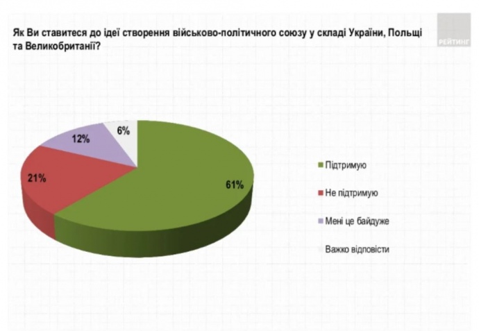 В Україні 61% громадян підтримують створення нового тристороннього формату за участі нашої країни, Польщі та Великої Британії. Про це свідчать дані січневого опитування соцгрупи "Рейтинг", яке проводили з 21 по 23 січня.
