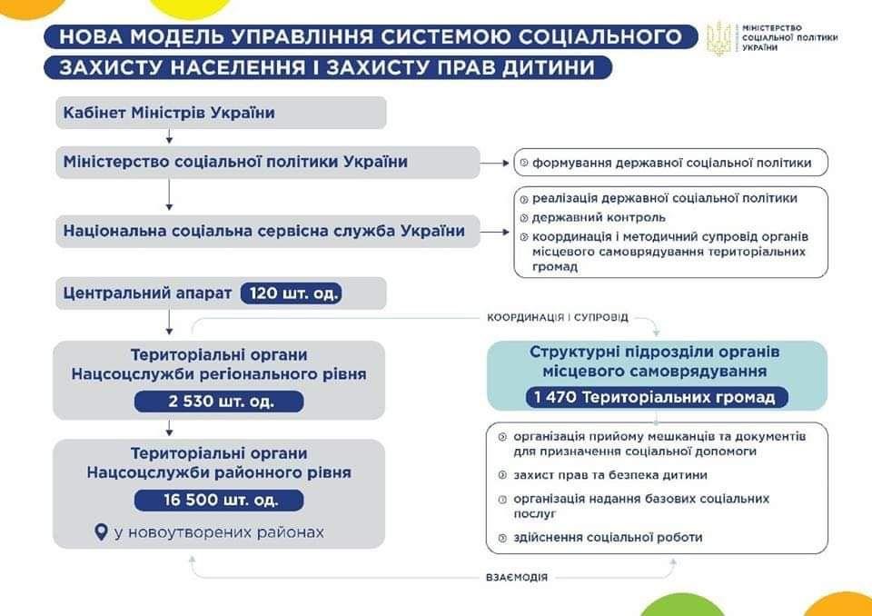 “Метою Концепції є впровадження протягом 2020-2022 років в умовах завершального етапу децентралізації ефективної моделі взаємодії органів виконавчої влади та органів місцевого самоврядування для реалізації державної політики у сфері соціального захисту населення та захисту прав дітей, а також здійснення державного контролю за дотриманням вимог законодавства у зазначеній сфері”, - зазначили у Мінсоцполітики.