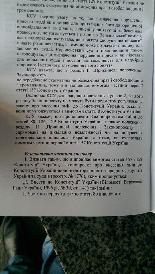 "Визнати таким, що відповідає вимогам статей 157 і 158 Конституції України, законопроект про внесення змін до Конституції України щодо недоторканності народних депутатів і суддів",- йдеться в судовому виведення.