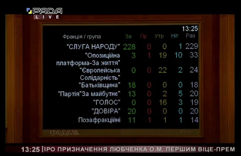 Верховна Рада призначила Олексія Любченка першим віцепрем'єр-міністром – міністром економіки. Таке рішення підтримали 293 народні депутати.