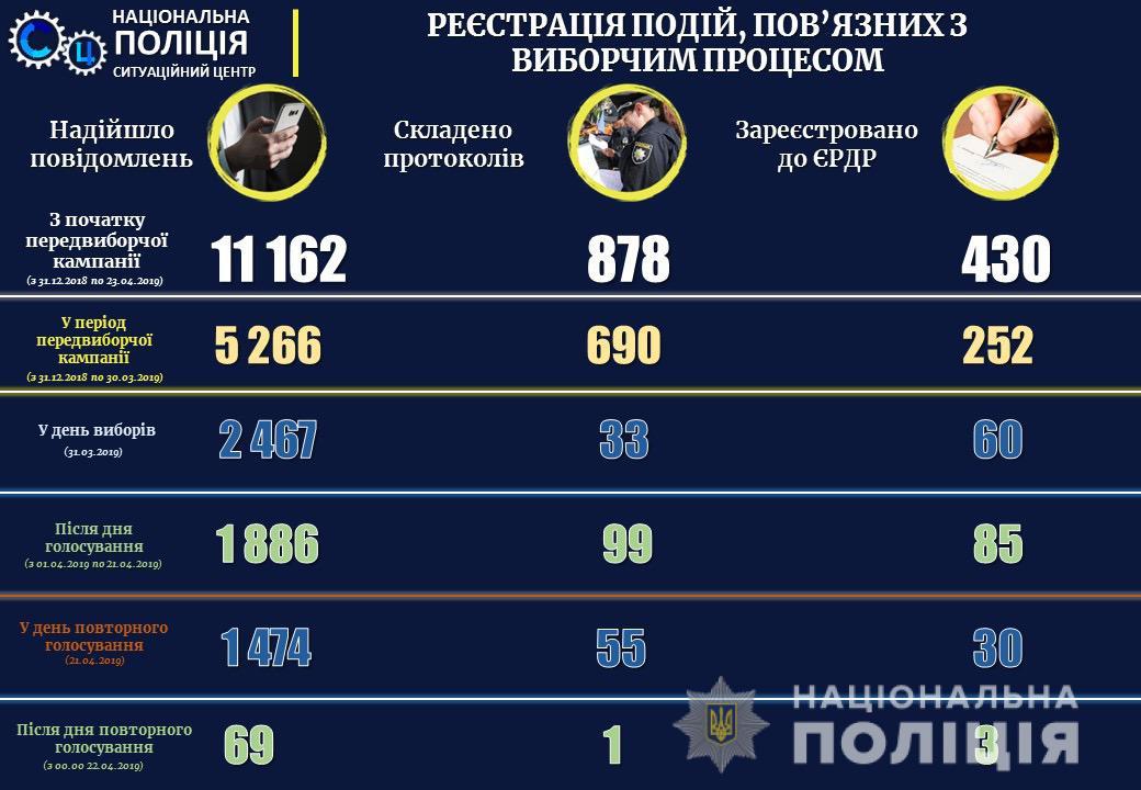 Національна поліція за час проведення президентських виборів отримала 11 162 повідомлення про порушення.