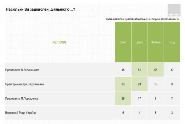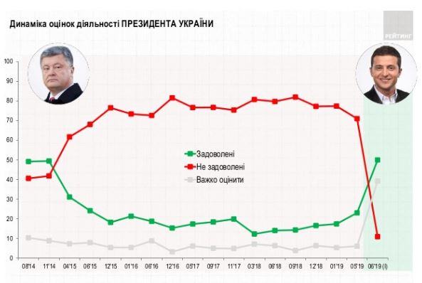 Половина громадян України задоволені діяльністю новообраного президента Володимира Зеленського, та лише 11% – протилежної думки. Такі дані соціологічного опитування опублікувала група "Рейтинг".