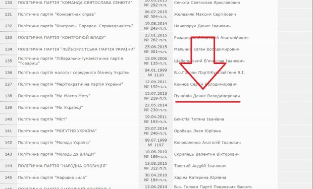 Згідно з інформацією ЦВК, головою партії вказаний ватажок "ДНР" Пушилін.