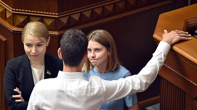 Для більшості депутатів ця каденція стала першою. "Слуг народу" в парламенті можна ідентифікувати за партійною символікою – круглими значками зеленого кольору.