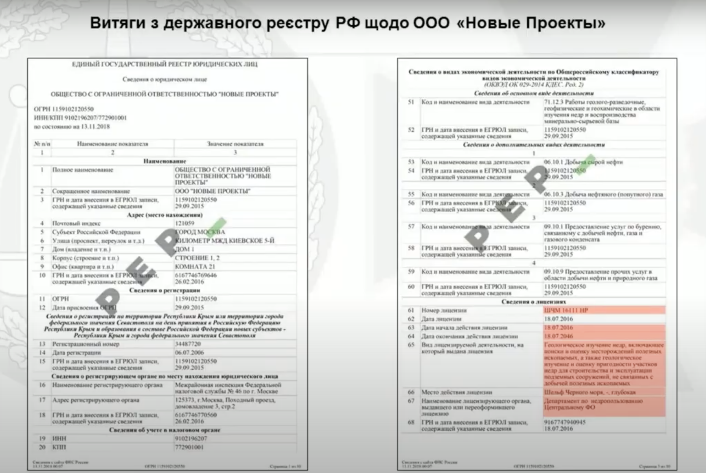 "З 2015 по 2020 роки Медведчуком та Козаком спільно з іншими особами було незаконно проведено перереєстрацію ТОВ "Нові проекти України" на ООО "Новые проекты РФ". Також було отримало від так званого "Арбітражного суду республіки Крим" рішення, яким фактично визнано місцезнаходження ТОВ "Нові проекти України" на момент анексії на території Криму, та насправді підприємство було зареєстроване в Києві. Внаслідок цього окупантами було проведено перереєстрацію підприємства за російськими стандартами знову таки за сприяння представників окупаційної влади", - повідомляє Венедіктова.
