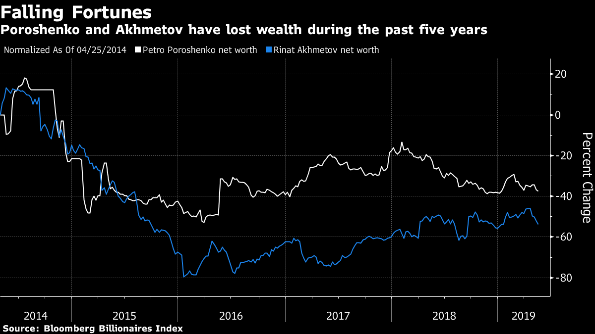 Минулого місяця він програв вибори Володимиру Зеленському на тлі невдалих спроб покласти край корупції. Інші втратили більше грошей за цей період. Найбагатша людина України Рінат Ахметов, власник найбільшого промислового конгломерату країни, втратив більш ніж 50% - у нього залишилося 5,5 млрд доларів, резюмує агентство.
