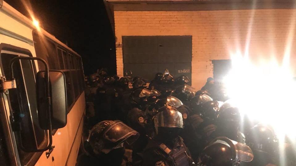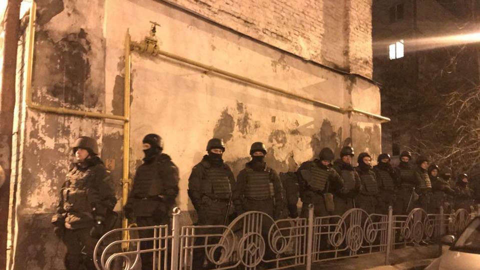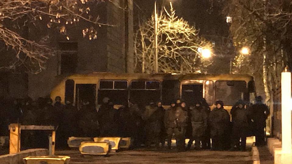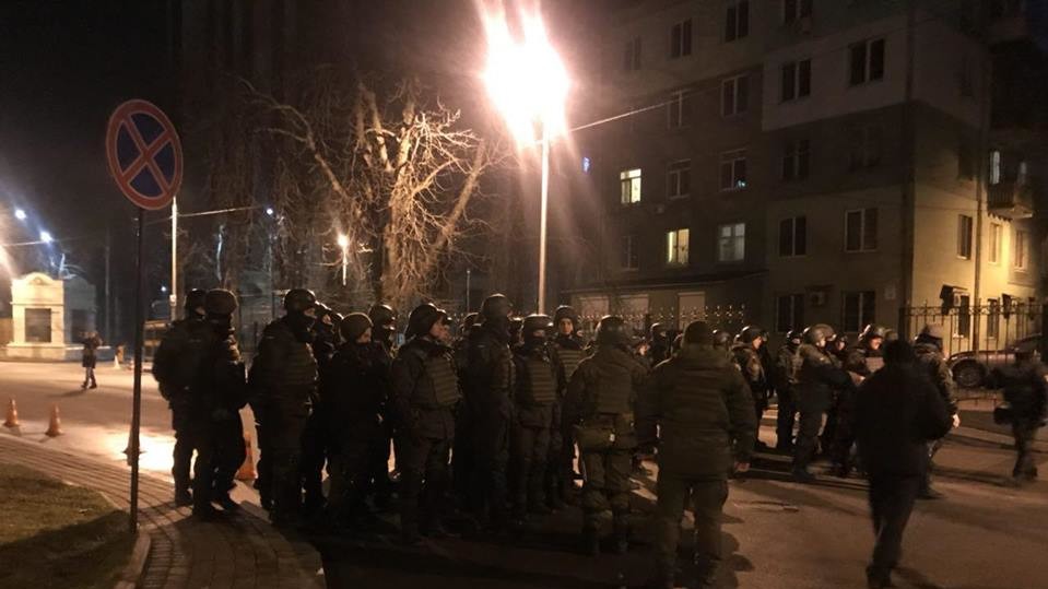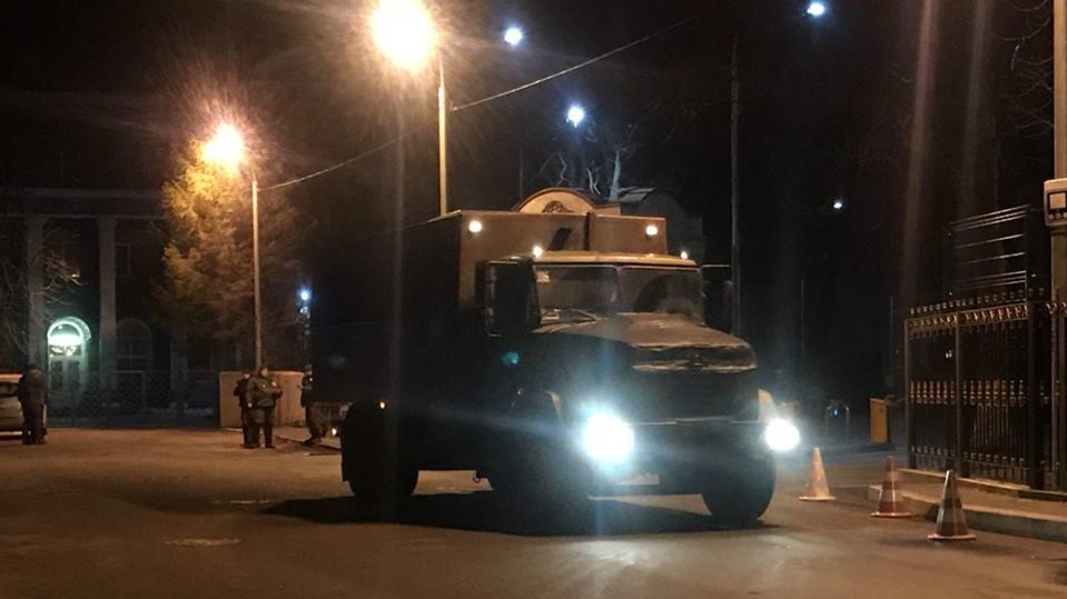 Під'їзди до будівлі перекриті технікою, квартал оточено співробітниками поліції і військовослужбовцями Нацгвардії. На місці також перебуває пожежний розрахунок.