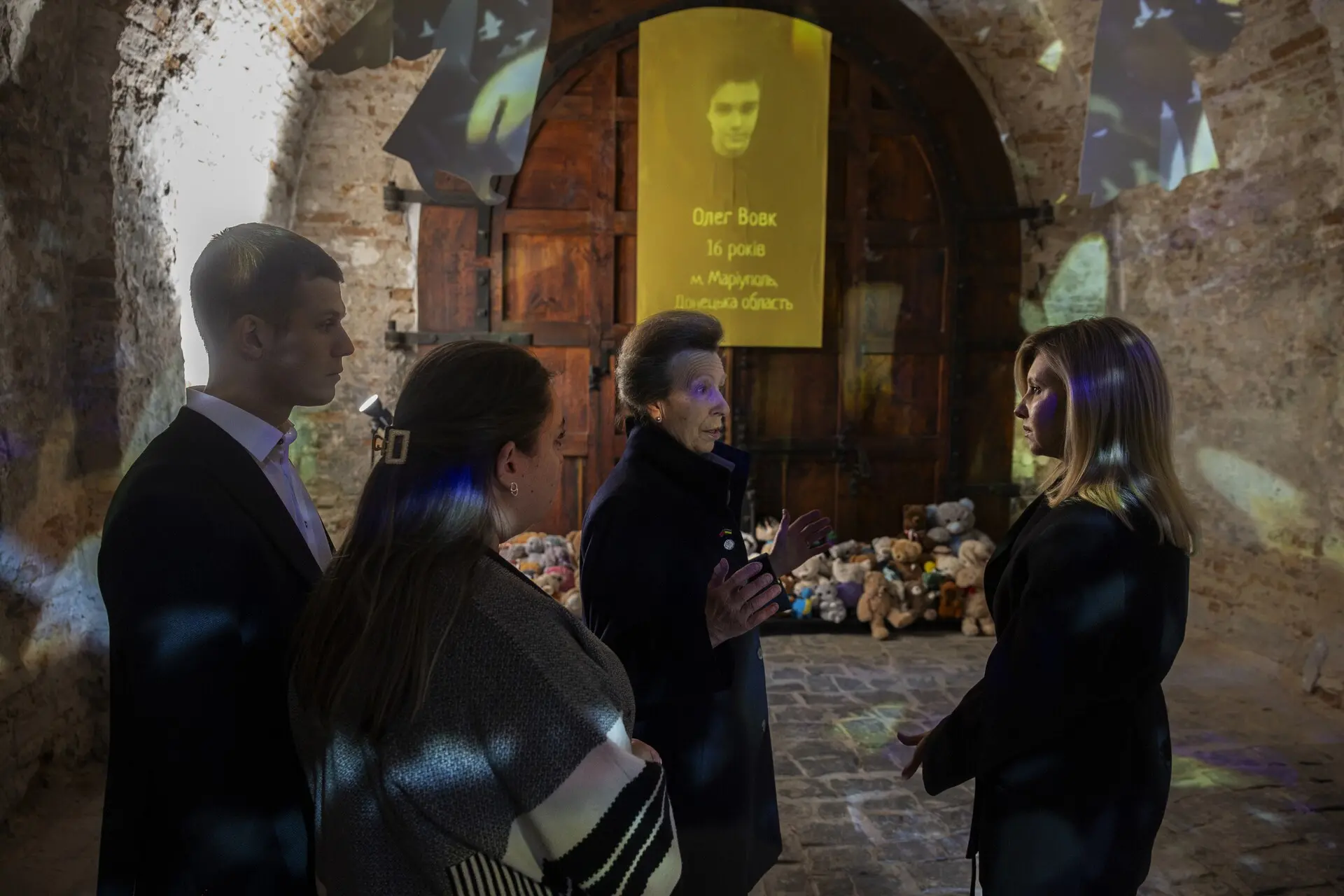 Як пише BBC, принцеса Анна зустрілася із президентом Володимиром Зеленськийм, першою леді Оленою Зеленською та залишила іграшкового ведмедика, такого, як у дитинстві був у її доньки Зари, біля меморіалу дітям, загиблим з часів повномасштабного вторгнення Росії, а також поспілкувалася з дітьми, яких вдалось повернути після того, як їх викрали росіяни.