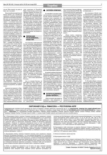 Зокрема, повідомлення про вручення позову "ПриватБанк" опублікував у всеукраїнських газетах "Голос України", "День" та "Факти та коментарі". Згідно з кіпрським законодавством, публікація таких повідомлень у друкованих засобах масової інформації України є доказом вручення позову. Найбільший позов стосується двох серій транзакцій, які, за твердженням банку, були незаконно вчинені в період між 2013 та 2016 роками за вказівкою його колишніх власників. Вони передбачали виплату величезних сум відповідно до кредитних договорів, які, як стверджує банк, є хибними та непогашеними.