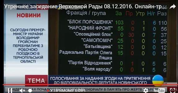 У четвер, 8 грудня, заслухавши доповідь генпрокурора України Юрія Луценка, Верховна Рада проголосувала за зняття недоторканності з депутата України фракції "Опозиційний блок" Вадима Новинського.