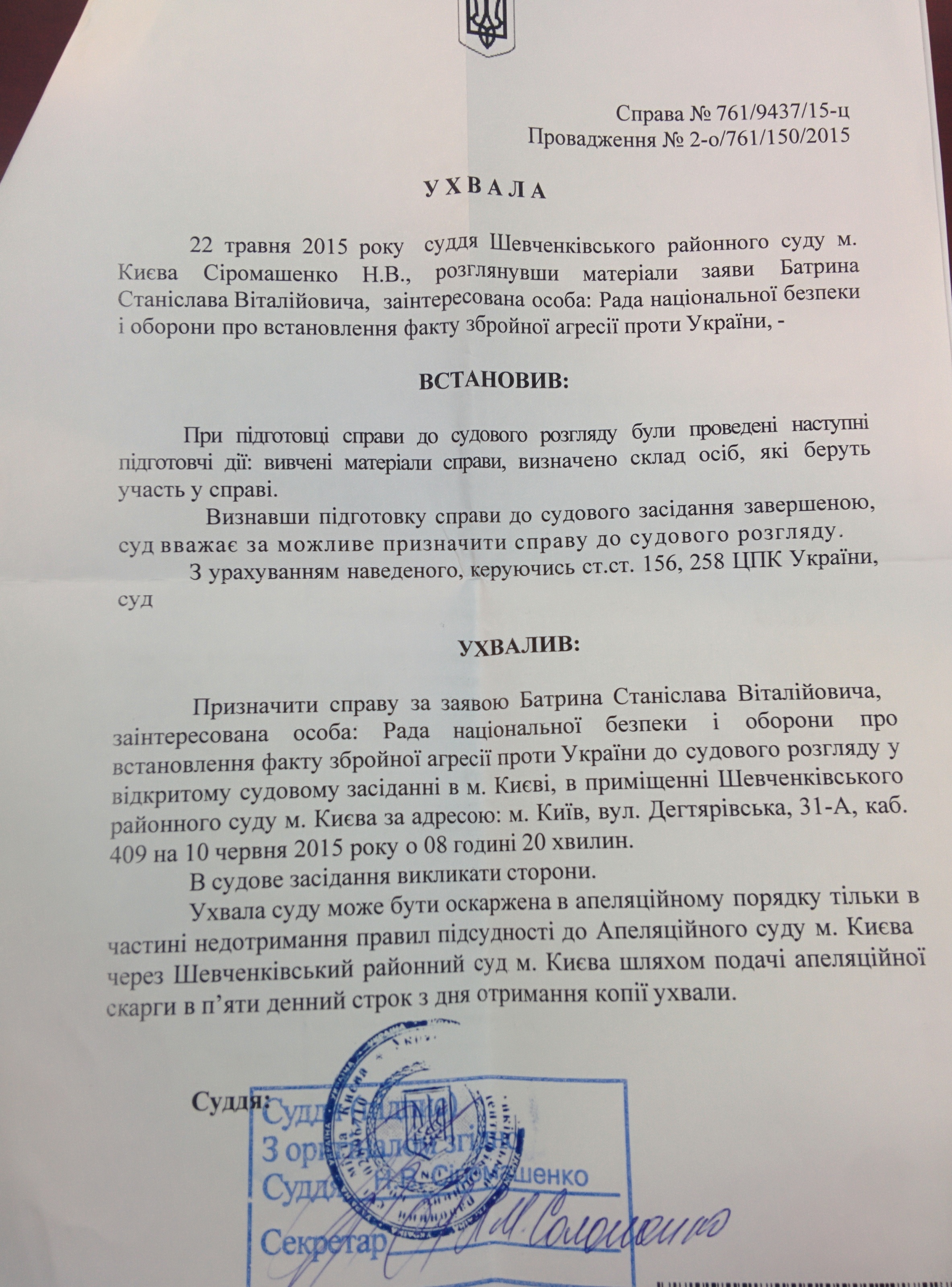 "В ході розгляду справи розраховуємо можливим дати оцінку всім доказам присутності військ РФ на території України і отримати судове рішення, що стало першим легальним висновком, яким може в майбутньому буде надаватися значення для міжнародно-правової діяльності вищого керівництва Росії", - розповів Батрин.