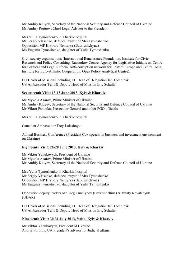 Як повідомлялося, 15 жовтня був продовжений на місяць мандат спостережної місії Європейського парламенту в складі екс-президента Європарламенту Пета Кокса та екс-президента Польщі Олександра Кваснєвського, оскільки поки не було досягнуто головної мети місії - звільнення Тимошенко.