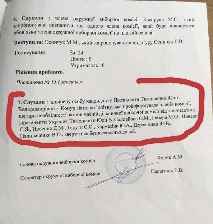"Якщо ви думаєте, що лише Порошенко вкомплектовує дільничні виборчі комісії представниками своїх технічних кандидатів, то ні. Найближча конкурентка діючого президента по розбудові "сіток" Юлія Тимошенко теж проводить доукомплектацію. Кількість технічних кандидатів кожного з двох вищевказаних політиків, можна встановити лише побіжно. У Порошенка ми нарахували таких 15-19, у Тимошенко 8-10. Але дуже добре, коли з'являється офіційно затверджений протокол засідання, наприклад, Чернівецької ОВК", - йдеться у повідомленні.