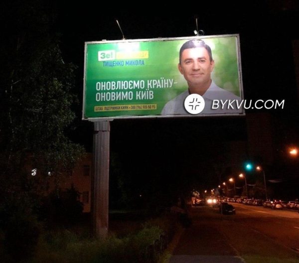 Через кілька годин "Буквы" також опублікували фото вже розміщених по Києву передвиборчих бігбордів Тищенка:
