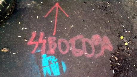 "Сьогодні вранці група з 15-20 молодих підійшли до офісу "Свободи"та кілька хвилин викрикувала, що "Свобода" - фашисти та інші всім обридлі гасла комуністів, а також окреслила стіни будинку свастиками та іншими нацистськими символами", - зазначив він.