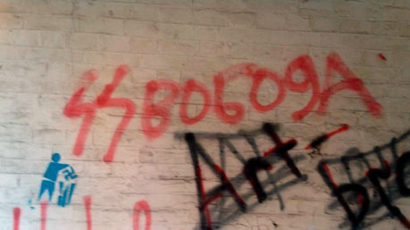 У суботу група з двох десятків осіб, влаштувала імпровізований мітинг під офісом, а також обмалювала стіни будинку свастиками і нацистськими символами.