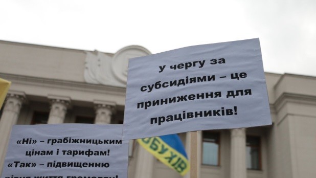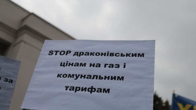 У Києві протестують проти підвищення тарифів, підійшли під Кабінет міністрів і будівлю Верховної Радою, повністю перекривши автомобільний рух по вул. Грушевського.