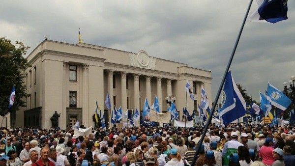 Як передає кореспондент агентства "Інтерфакс-Україна", мітингувальники, які пройшли організованими колонами по центральним вулицям Києва, підійшли до будівель уряду і парламенту, де в середу буде тривати акція протесту.
