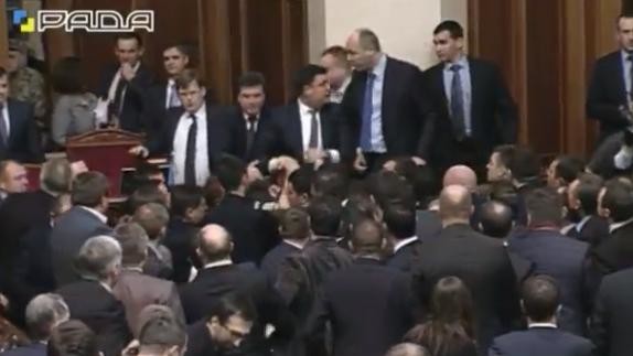 У п'ятницю, 11 грудня, під час звіту прем'єр-міністра Арсенія Яценюка про рік роботи уряду в Раді почалася бійка.