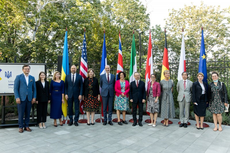 Офіційний лист-відповідь міністра Європи і закордонних справ Франції Жан-Іва Ле Дріана вручив посол Франції в Україні Етьєн де Понсен на урочистій зустрічі з нагоди офіційного приєднання України до міжнародного "Партнерства Біарріц", в якій взяли участь дружина президента Олена Зеленська, прем'єр-міністр Денис Шмигаль, міністр закордонних справ Дмитро Кулеба, віце-прем'єр-міністр з питань європейської та євроатлантичної інтеграції Ольга Стефанишина, посли країн G7 і Швеції, а також представники міжнародних організацій.