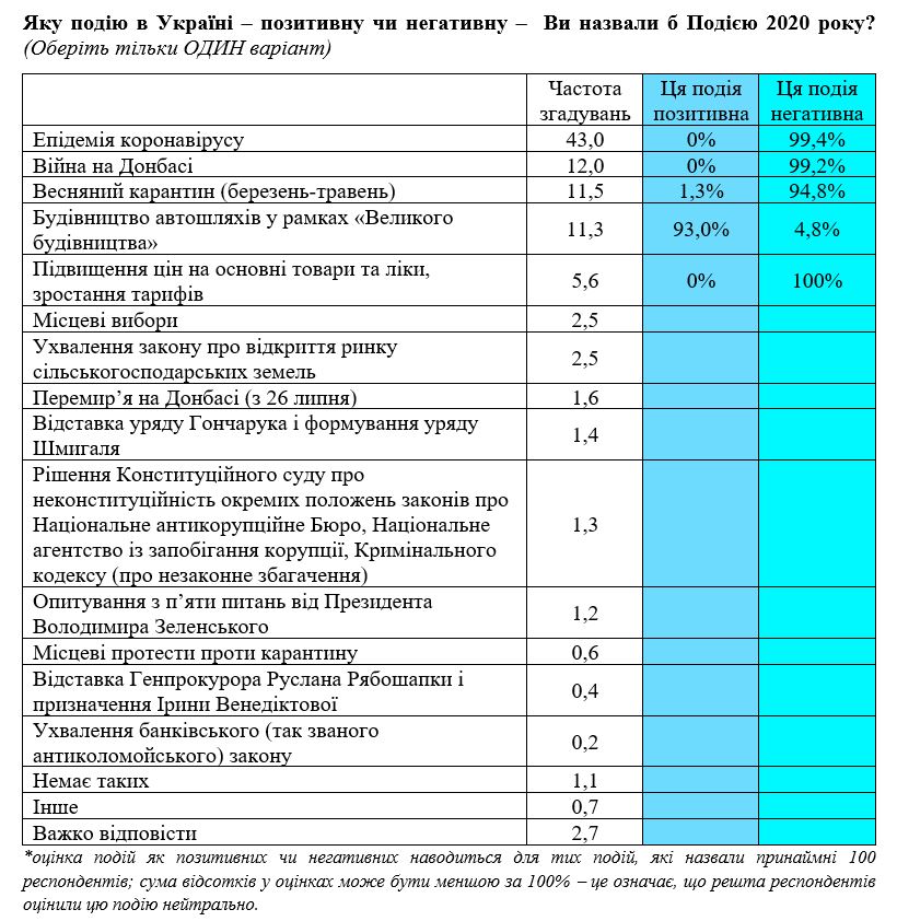 Зазначимо, що всього в опитуванні взяли участь 2004 респонденти. Тобто, 11,3% - це 226 осіб. З них, 93% - це приблизно 210 українців, які й назвали ініціативу президента головною позитивною подією 2020 року.