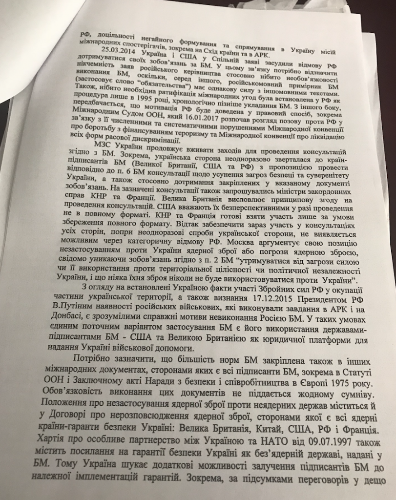 Зазначимо, перші переговори країн-підписантів Будапештського меморандуму відбулися 5 березня 2014 року в Парижі. 25 березня 2014 США в спільній заяві з Україною констатували порушення Будапештського Меморандуму Росією.